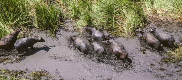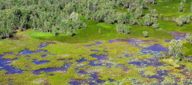 Water buffalo, wild cattle, pigs, horses, donkeys, cats, and cane toads are all threats in the Arafura Swamp region.